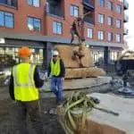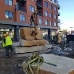 Pro Lift is reputed to be the best crane service in the greater Denver area, and for good reason. With a sterling reputation for safety and precise attention to detail, there was really only one choice for the National Sculptor’s Guild when it came time to place the sandstone monoliths and other pieces of The Foundry’s art installation. The hydraulic truck crane was capable of moving the stone from one place to the next and exactly positioning it where artist Denny Haskew directed.